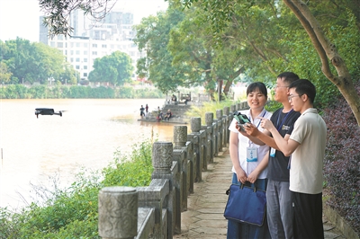 廣西壯族自治區(qū)北流市紀(jì)委監(jiān)委把生態(tài)環(huán)保責(zé)任落實情況作為政治監(jiān)督重點,嚴(yán)肅查處濕地保護方面不擔(dān)當(dāng)、不作為、亂作為、假作為等問題,用鐵的紀(jì)律守護綠水青山。圖為近日,該市紀(jì)檢監(jiān)察干部與生態(tài)環(huán)境部門工作人員在圭江河濕地開展聯(lián)合監(jiān)督檢查,了解相關(guān)黨員干部履職情況。李家輝 攝