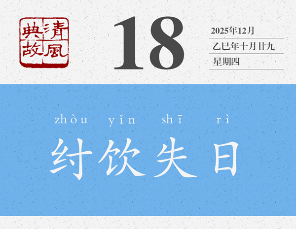 一提起商紂王,大概就會想起沉湎酒色、窮兵黷武、重刑厚斂等等,與之相關(guān)的典故也有酒池肉林、炮烙之刑、牝雞司晨等等。“歡以失日”是他沉湎酒色的又一個(gè)故事,往輕處說就是酒醉失憶了,往重處說就是把一切都拋到九霄云外了。箕子,即子胥余,商紂王的叔父,官至太師,封于箕,故稱箕子,“殷末三仁”之一,《論語·微子》曰:“微子去之,箕子為之奴,比干諫而死,殷有三仁焉。”箕子曾多次勸諫紂王,但紂王不聽,他心灰意冷,索性披發(fā)佯狂,紂王見此,以為箕子真瘋了,遂將他囚禁起來,貶為奴隸。有了這個(gè)背景,就知道箕子為什么要“辭以醉而不知”了。后世則以“紂飲失日”為典,形容生活荒唐混亂,也用來形容不辨時(shí)間。黃遵憲詩《倫敦大霧行》:“蒼天已死黃天立,倒海翻云百神集。一時(shí)天醉帝夢酣,舉國沉迷同失日。”