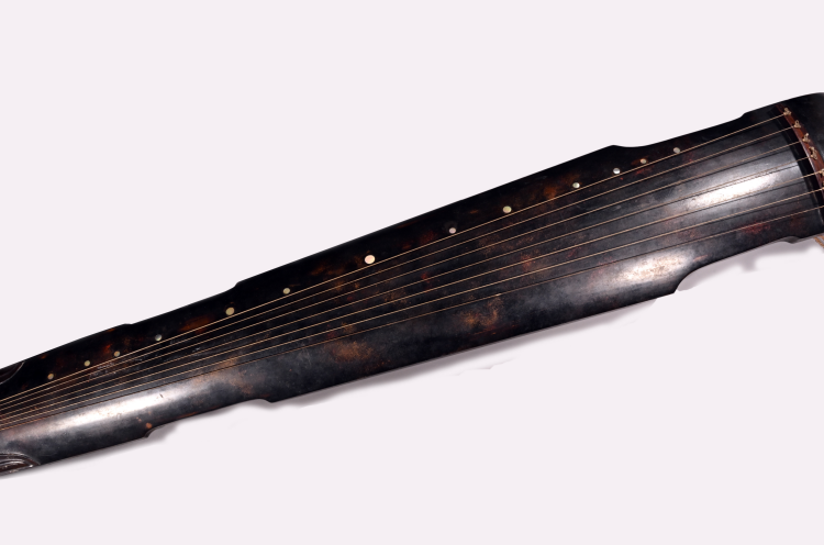 明代,通長(zhǎng)124.5厘米,琴額寬17.3厘米,琴肩寬21厘米,琴尾寬13厘米,形制為仲尼式,琴面為梧桐木,通體呈深栗色。護(hù)軫為卷角飾,弦軫為紅木制成。琴腹龍池上方鐫刻篆書(shū)詩(shī)一首“空山無(wú)人,鳴泉幽咽,歸從舒音,淖猨司鈴”,共16字,落款為“鄭世子”。池下沼上鐫刻方形篆書(shū)印章一方,為“鄭學(xué)圖書(shū)”??谈箍?ldquo;大明萬(wàn)歷十年歲次壬午二月吉旦,鄭世子載堉按太簇尺造”。朱載堉是明代杰出律學(xué)家、歷算家,首創(chuàng) “十二平均律”,在音樂(lè)、數(shù)學(xué)、天文等領(lǐng)域均有重大建樹(shù)。