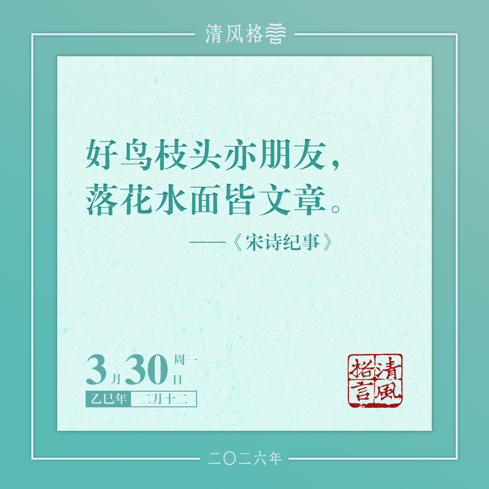 清風(fēng)格言 | 好鳥枝頭亦朋友,落花水面皆文章