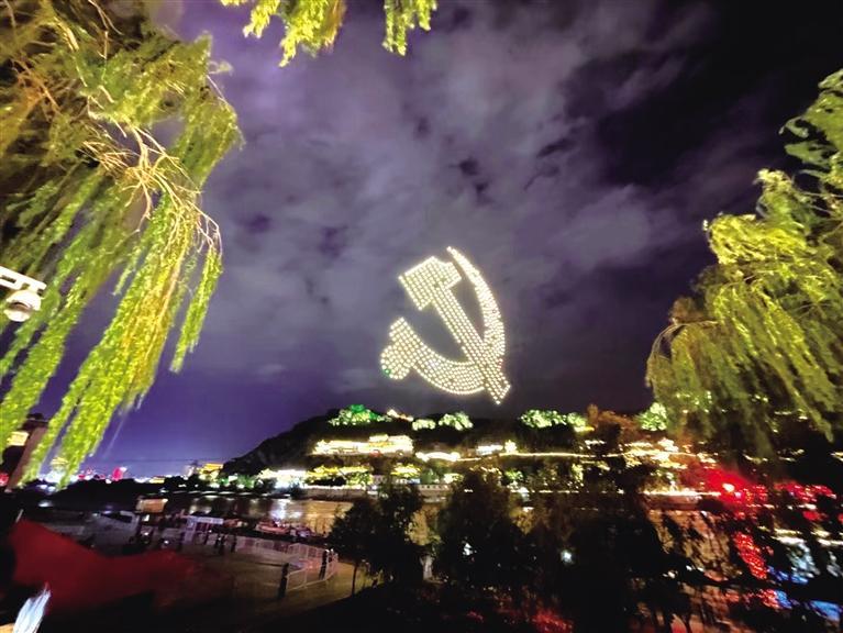 中國甘肅網(wǎng)7月1日訊 據(jù)蘭州日報報道(記者 王瀟旋 攝)為慶祝中國共產(chǎn)黨成立100周年,6月30日晚,深圳、合肥、鄭州、蘭州等地上演光影盛宴。蘭州用燈光和無人機扮靚城市夜空,為黨的生日獻上璀璨光影華美的祝福。