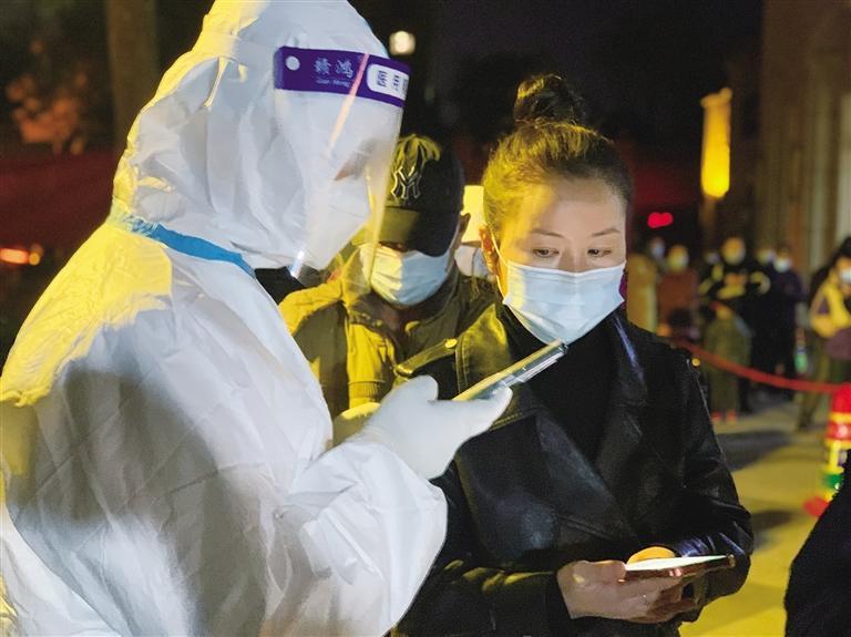 走進小區(qū)大門,記者聽到小區(qū)內多個廣播正在循環(huán)播放疫情防控的相關提示。在小區(qū)廣場上,居民們拿著物業(yè)和社區(qū)發(fā)放的“檢測號牌”有序排隊。記者了解到,這個小區(qū)共有16座居民樓,居民約8000人。今天早晨8點就已經開始檢測,為保證轄區(qū)內居民及時有效地開展核酸檢測工作,社區(qū)工作者與物業(yè)樓管逐戶為大家發(fā)放檢測號牌,具體檢測時間,由物業(yè)中心提前發(fā)至業(yè)主群內,拿到號牌的居民接到通知后,在志愿者的引導下,有序排隊進行核酸檢測,確保做到“整樓帶出、整樓帶回”。截至晚上8時30分,已經檢測了大約3000余人,在25日還將進行一天,確保兩天內小區(qū)內全部人員完成核酸檢測。