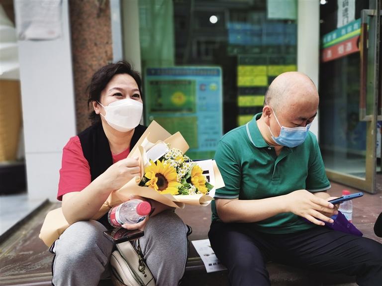 記者在等待的家長群里來回穿梭,發(fā)現(xiàn)給孩子送鮮花的家長可真不少,上前攀談,手捧向日葵的媽媽爽朗大方,她向記者解釋了送孩子向日葵的寓意:“我家的孩子是女孩,是蘭州一中的學(xué)生,我希望她考個好成績。向日葵的寓意就是‘一舉奪魁’。我們很緊張但是不敢表露出來,不能把這種情緒傳導(dǎo)給孩子。送她花,就是為了讓她心情好一些。”