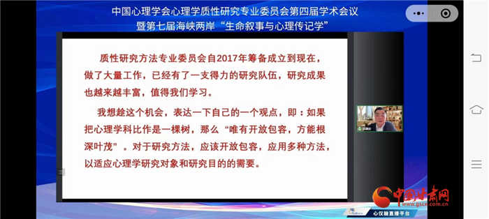 樂國(guó)安在回顧質(zhì)性心理學(xué)同仁們?cè)谶^去幾年的努力和取得的成績(jī)的基礎(chǔ)上,提醒大家,在方法的應(yīng)用上,要秉承開放的態(tài)度,“唯有開放包容,方能根深葉茂”。