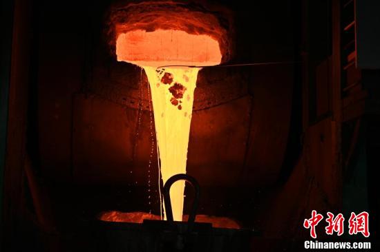 近期,位于甘肅省金昌市金川集團的鎳冶煉廠閃速爐車間內(nèi),操作員正在進行高鎳锍緩冷工作。