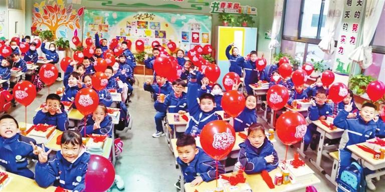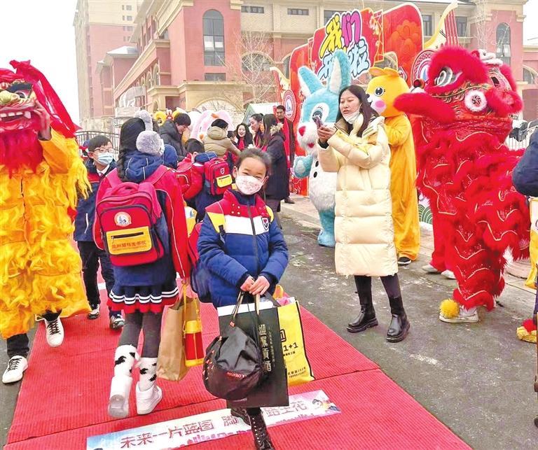 氣球、棒棒糖、筆記本……每一份開學小禮物都蘊藏著老師們深深的祝福和殷切的期望,打開這份開學禮,五彩斑斕的新學期已經(jīng)畫下了濃墨重彩的第一筆。猜燈謎、寫春聯(lián)、做花燈、觀看太平鼓表演、舞獅子、趣味套圈、扭秧歌……多姿多彩的迎接活動,將傳統(tǒng)文化與有益的游戲結合起來,營造出愉悅的開學氛圍。