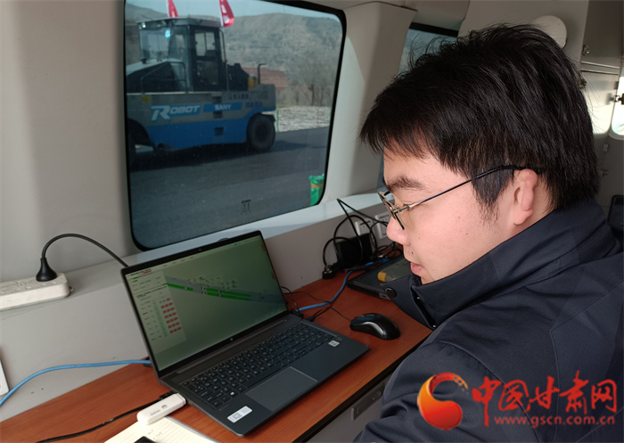 中國甘肅網(wǎng)4月6日訊(本網(wǎng)記者 宋芳科 實(shí)習(xí)生 王文博)“駕駛員可以休息一下,下面由無人駕駛集群智能化攤鋪路面。”4月6日上午,甘肅路橋安臨路面二標(biāo)項(xiàng)目瀝青路面鋪設(shè)現(xiàn)場,無人駕駛的鋪路機(jī)組成集群駛?cè)胧┕がF(xiàn)場,在無駕駛員操作的情況下智能前行,實(shí)現(xiàn)公路鋪設(shè)碾壓一體化成型,而指揮這些龐大工程車輛的僅僅是一名技術(shù)人員和一臺(tái)筆記本電腦,真正實(shí)現(xiàn)了路面鋪設(shè)智控化。