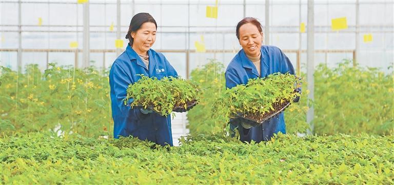 隴南市武都區(qū)石門鎮(zhèn)青隴現(xiàn)代農(nóng)業(yè)產(chǎn)業(yè)園里,產(chǎn)業(yè)工人忙著搬運西紅柿育苗盤