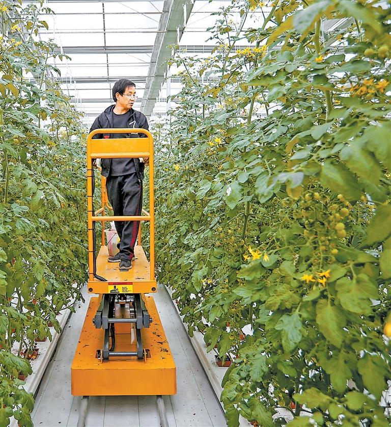 武都區(qū)石門鎮(zhèn)青隴現(xiàn)代農(nóng)業(yè)產(chǎn)業(yè)園里技術(shù)人員在管護櫻桃西紅柿
