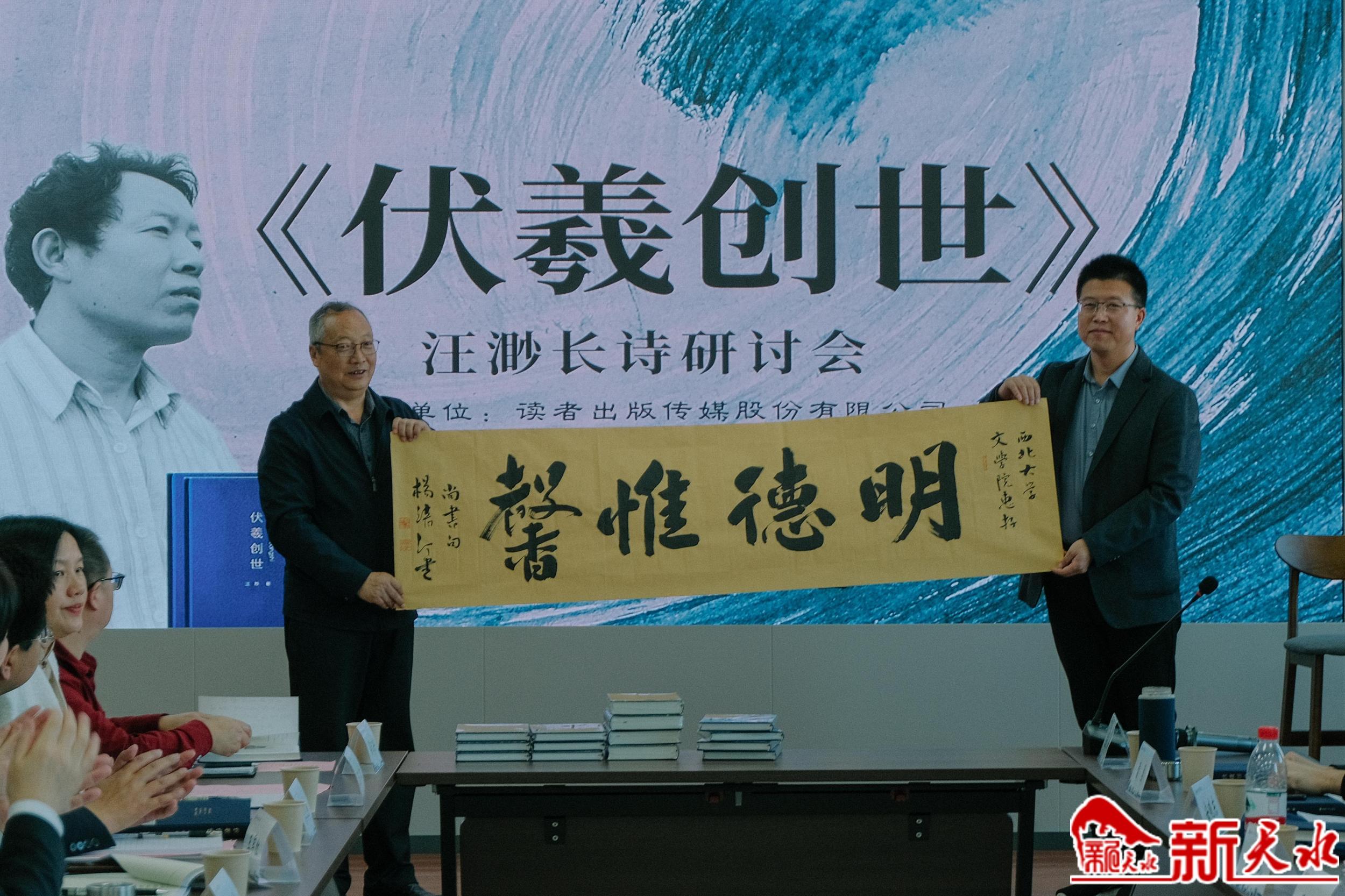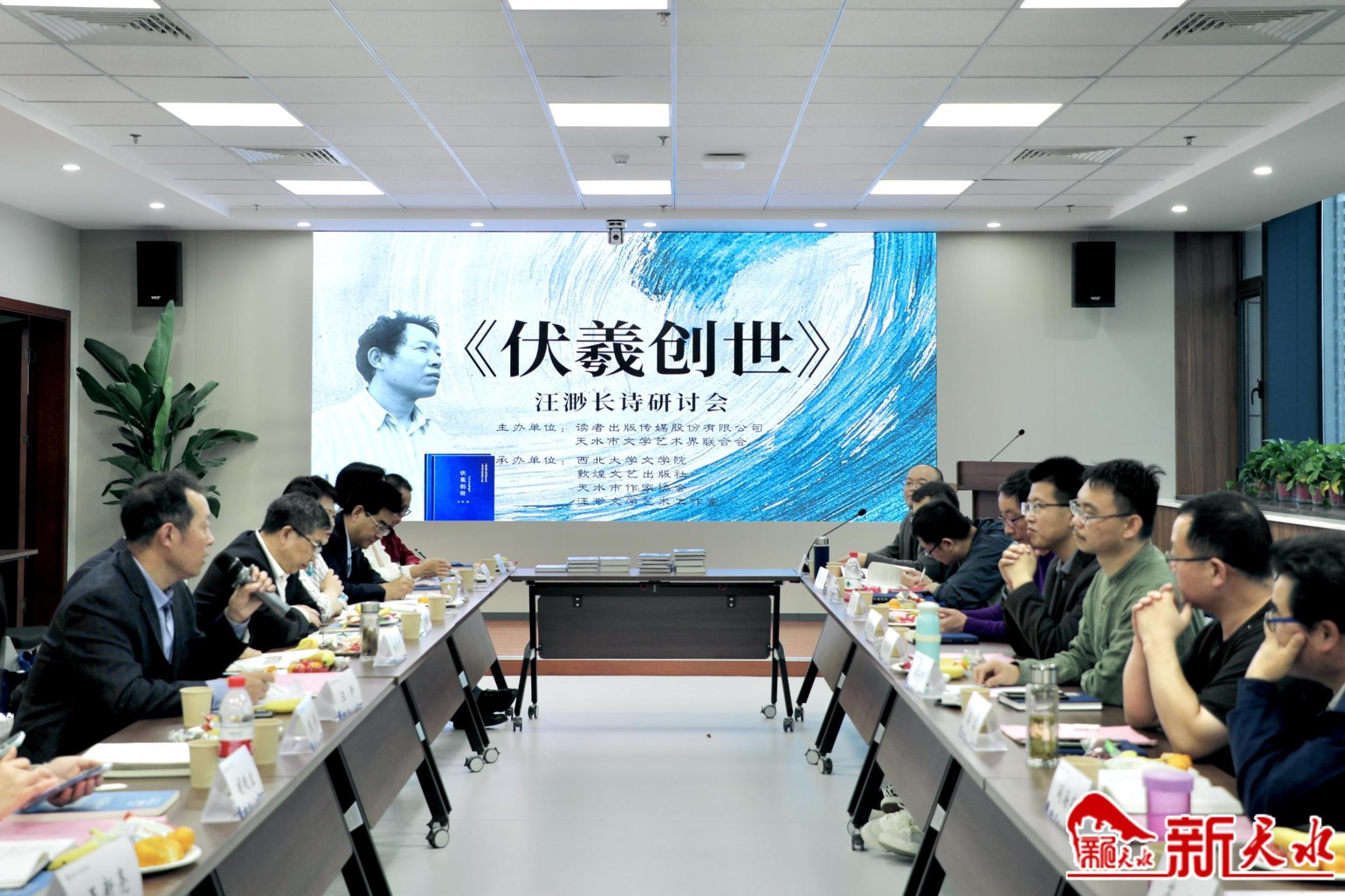 新天水訊【記者楊華 陳光毅】10月14日,天水詩(shī)人汪渺長(zhǎng)詩(shī)《伏羲創(chuàng)世》研討會(huì)在西北大學(xué)文學(xué)院舉辦。本次研討會(huì)由讀者出版?zhèn)髅焦煞萦邢薰?、天水市文?lián)主辦,西北大學(xué)文學(xué)院、敦煌文藝出版社、天水市作協(xié)、汪渺文學(xué)藝術(shù)工作室承辦。