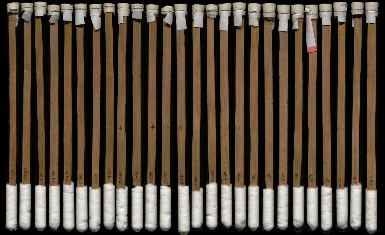 1959年,在武威市涼州區(qū)新華鄉(xiāng)磨嘴子第18號(hào)墓中,出土木簡(jiǎn)10枚,出土?xí)r懸掛于一鳩杖之上。其內(nèi)容記載了東漢永平十五年(72年)幼伯受王杖事,并錄建始二年(前31年)九月“年七十受王杖”的詔書(shū)和和平元年(前28年)毆擊王杖主當(dāng)棄市的令。由于簡(jiǎn)上無(wú)編號(hào),出土?xí)r次序已亂,史學(xué)界稱(chēng)其為“王杖十簡(jiǎn)”。簡(jiǎn)長(zhǎng)23.2-23.3厘米,寬1厘米,共有240字。松木削制、兩道編繩、先書(shū)后編、墨書(shū)隸體、字跡清晰。