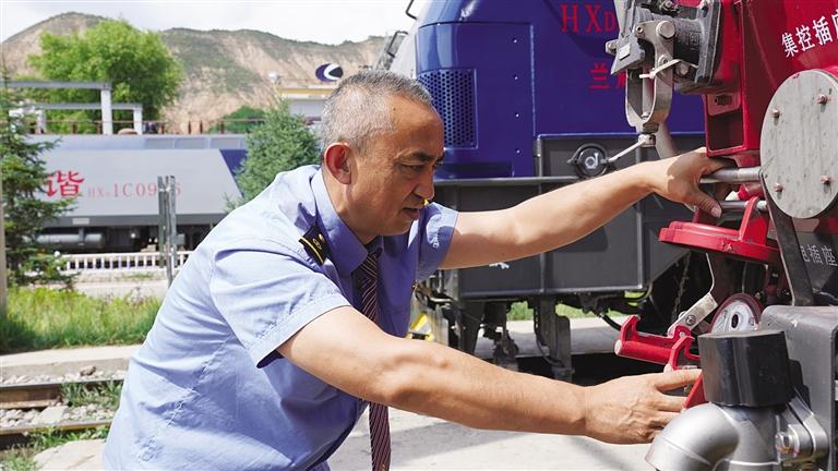 中國(guó)甘肅網(wǎng)7月9日訊 據(jù)蘭州晚報(bào)報(bào)道(記者 譚安麗 文/圖 通訊員 趙童)仲夏時(shí)節(jié),陽(yáng)光明媚,沐浴著大西北的陽(yáng)光,一列飛馳的鋼鐵巨龍?jiān)陔]海線群山中穿行。駕駛室內(nèi),56歲的司機(jī)劉曉明手握閘把、眼睛緊緊注視前方,操縱著機(jī)車(chē)穿山越谷,快速馳騁。