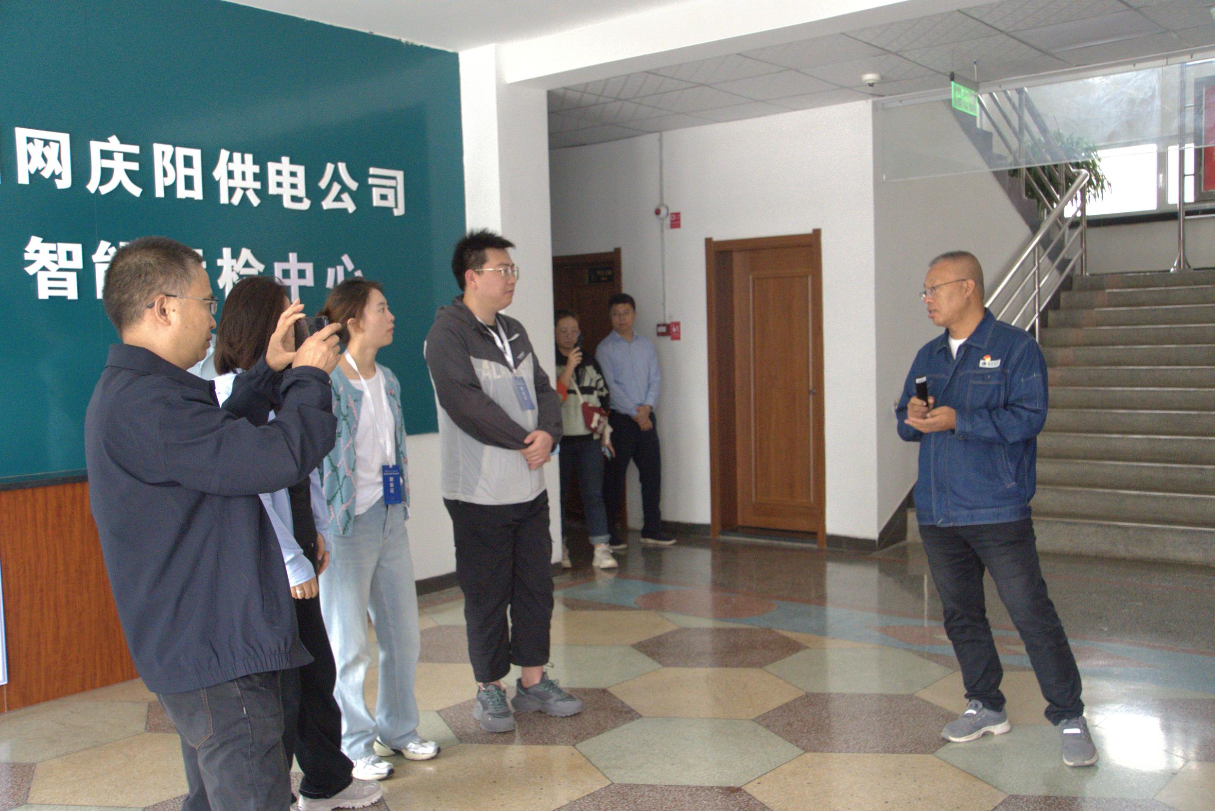 工作人員為采訪團(tuán)介紹國網(wǎng)慶陽供電公司智能運檢中心概況