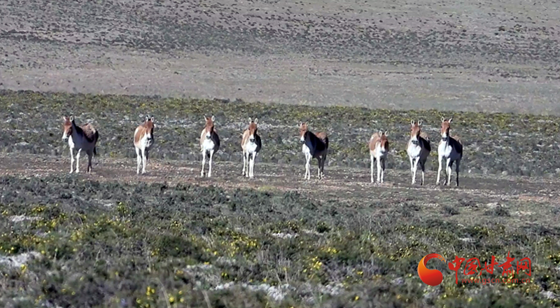 畫(huà)面顯示,此次拍攝到藏野驢共10頭,它們覓食歸來(lái),時(shí)而排成一排,悠閑地看著眼前的陌生來(lái)客,時(shí)而奔跑,馳騁在廣袤的草原之上。