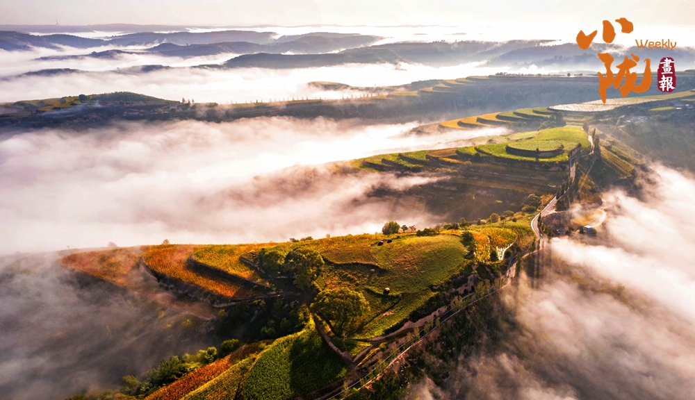 清晨,云海、山嶺與樓宇,恍如人間仙境一般。這不僅是視覺的盛宴,更是對黃土塬生態(tài)之美的深情禮贊:昔日這片貧瘠荒涼的土地,眼下已是生機(jī)勃發(fā)、綠意盎然。