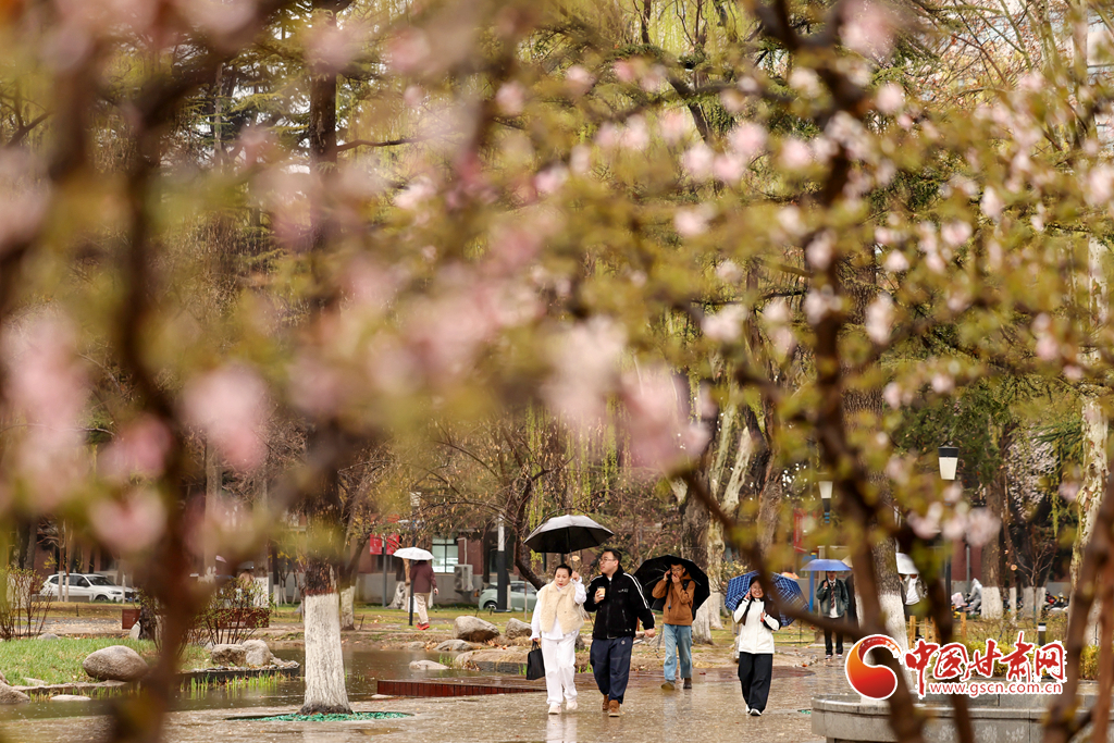 3月29日,蘭州迎來降雨天氣。蘭州大學(xué)校園內(nèi)細(xì)雨綿綿,繁花帶露,師生漫步雨中賞花觀景,盡享春日詩(shī)意。溫潤(rùn)春雨潤(rùn)澤金城,勾勒出清新雅致的春日畫卷。