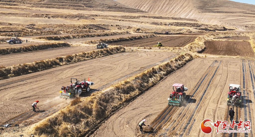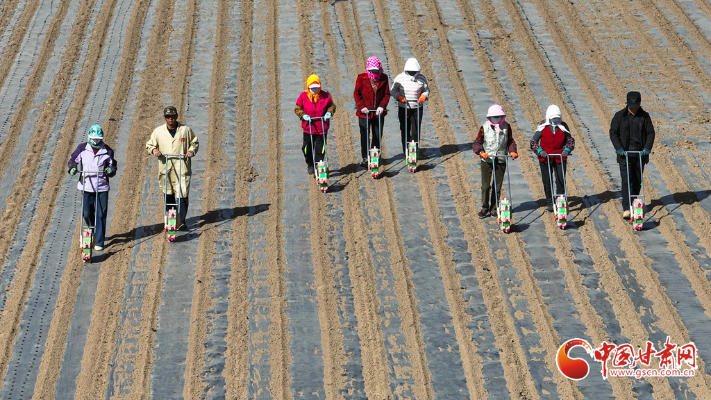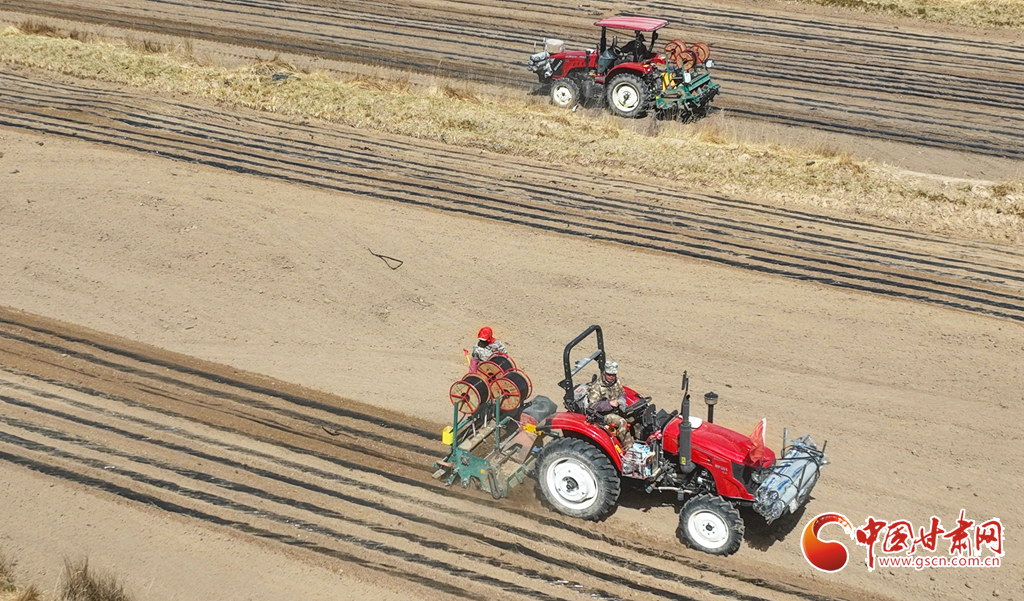 4月3日,張掖市民樂縣5萬多畝制種油菜基地上,種植戶正忙著覆膜、鋪設(shè)滴灌帶,并用手扶小型滾輪播種器進(jìn)行精量播種,田間地頭一派繁忙的春耕景象。