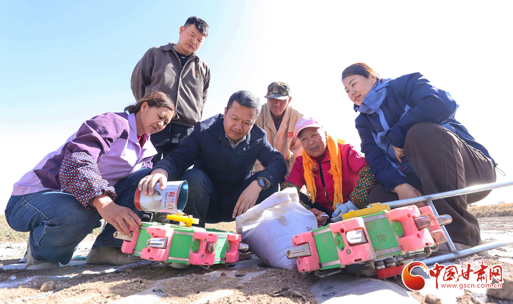 國家油菜產(chǎn)業(yè)技術(shù)體系張掖綜合試驗站專家現(xiàn)場指導(dǎo)種植農(nóng)戶進(jìn)行精量播種