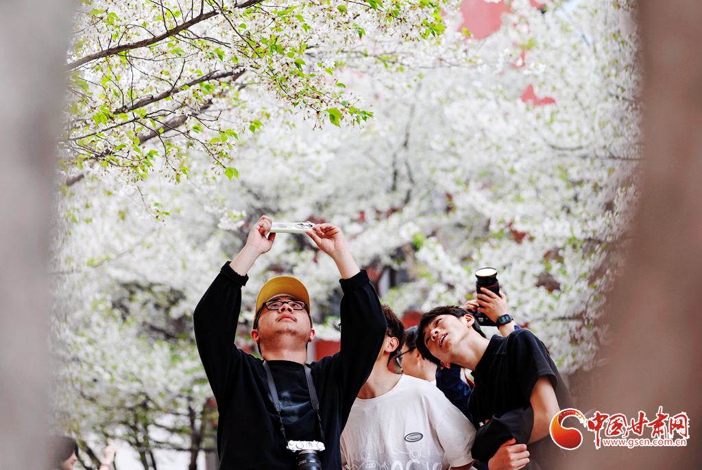 4月5日,市民在蘭州大學(xué)校園內(nèi)賞櫻花,樂(lè)享春光。
