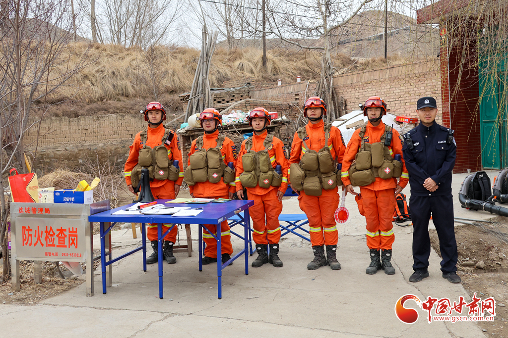 甘肅消防救援機動總隊蘭州支隊消防救援人員聯(lián)合甘肅省連城國家級自然保護區(qū)管理局、連城鎮(zhèn)政府、蘭州市公安局森林分局連城派出所在明家莊村阿虎狼溝設卡檢查。
