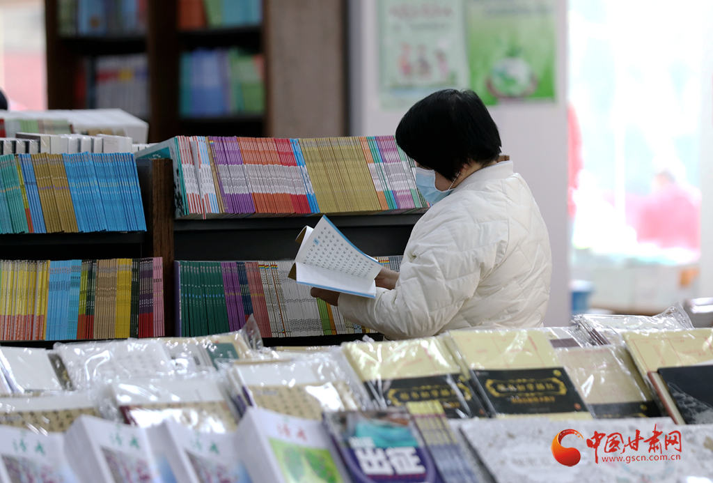 3月19日,在蘭州市西北書城,一名市民正在挑選書籍。