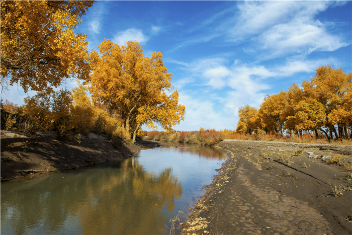 望桿傲立胡楊樹,逾萬年難腐。看錦繡金黃,彩袂飄飄,持練當(dāng)空舞。