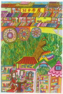 面對這部由中國少年兒童新聞出版總社出版的《“我的書屋·我的夢”——2019年農(nóng)村少年兒童閱讀實踐活動優(yōu)秀作品集》,讓人欣喜的是,它不但有文字,還有很多入選的畫作,孩子們運用了大膽的色彩、大膽的想象、大膽的線條,恣肆地描繪著他們的夢和憧憬,這些夢根植于他們生活的山鄉(xiāng)曠野,又呼應著遠方、星辰與大海。我尤其記得其中的一幅,那是一座高聳的書塔,那種拔地而起、直上云霄的氣勢,是一種象征,是一種隱喻,是這一代孩子想站到巨人肩上的渴望,是他們對祖國明天最美好的祝福和期待,也是中華民族必將走向復興的昭示。