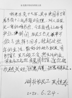 吳桂春:這句標(biāo)語我現(xiàn)在聽你說,才知道是誰的題詞,怪不得圖書館里的顯著位置都有“知識惠東莞”這句話。當(dāng)時覺得只要在圖書館辦一張借閱證,我這種外來民工也能進(jìn)來看書。書籍對每一個人來說都是公平的,不管誰看,都能得到實惠,知識也能惠及外來民工。