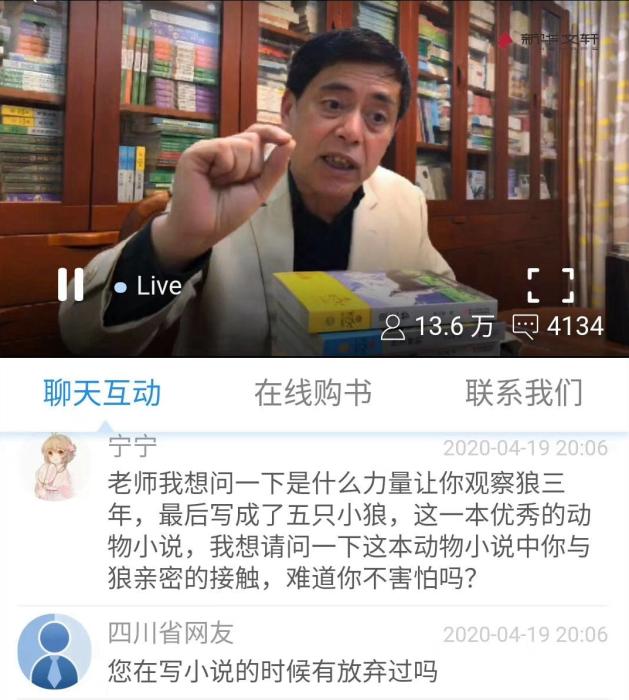 時(shí)間的指針再往回?fù)埽饲?,作家沈石溪開啟直播形式的線上課程,累計(jì)有超過14萬(wàn)人觀看,當(dāng)天他的作品《狼王夢(mèng)》賣出1萬(wàn)多冊(cè),碼洋超過30萬(wàn)元。