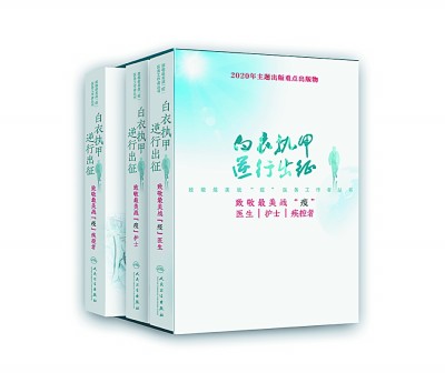 歷史不能忘卻,英雄應該銘記。記載他們的逆行,講述他們的故事,再現(xiàn)他們的壯舉,弘揚他們的精神,是出版界義不容辭的責任。在國家衛(wèi)生健康委員會、中宣部出版局及社會各界的大力支持和幫助下,人民衛(wèi)生出版社“白衣執(zhí)甲 逆行出征——致敬最美戰(zhàn)‘疫’醫(yī)務工作者”叢書,于2020年8月19日中國醫(yī)師節(jié)前夕出版了。這套叢書,內(nèi)容從數(shù)千篇全國一線戰(zhàn)“疫”醫(yī)務工作者征文中精選輯錄而成。依書寫人的身份不同,分為《致敬最美戰(zhàn)“疫”醫(yī)生》《致敬最美戰(zhàn)“疫”護士》《致敬最美戰(zhàn)“疫”疾控者》三個分冊,共收錄300余篇文章。