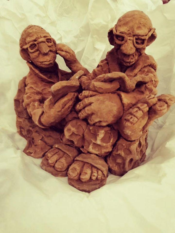 一個人的藝術成就,在多個領域里綻放,是一件難以置信的事情。劉老師的泥巴,玩出了她自己的風采。三盆泥巴,事先由主辦方備制好。像和面一樣,醒泥巴,摔泥巴,軟硬適宜。人還沒到合作,泥巴早已備好。