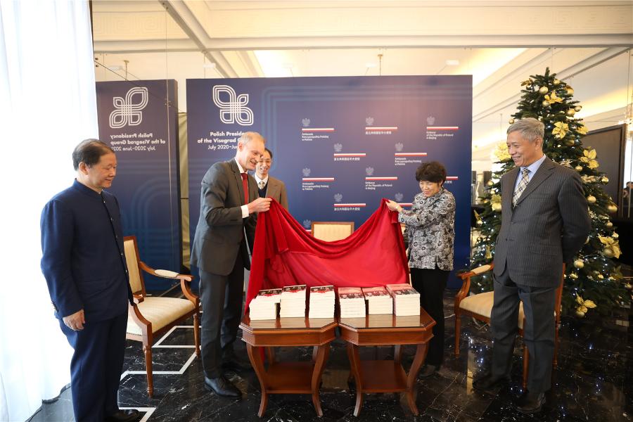 波蘭駐華大使賽熙軍(左二)和五洲傳播出版社副社長(zhǎng)荊孝敏(右二)為新書(shū)揭幕。五洲傳播出版社供圖