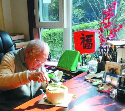 1月15日,農(nóng)歷臘月初三,中國文壇常青樹馬識途先生在成都家中迎來了自己的第106個生日。家人特地為老人定制了一個抹茶味的生日蛋糕??吹竭@個精致蛋糕,馬老開心不已,他拿著刀小心翼翼地親自切開,與親朋好友一起分享自己的快樂。