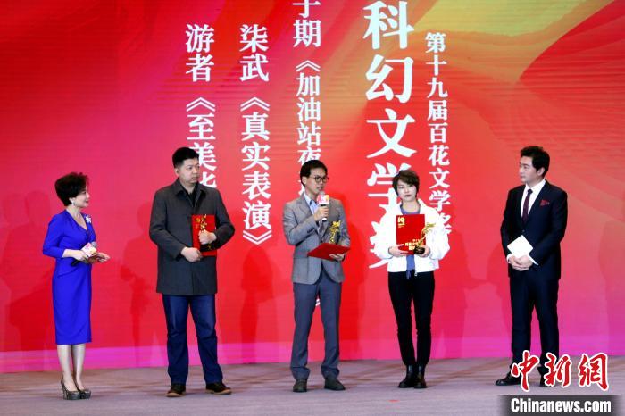 中新網(wǎng)天津12月19日電 (記者 張道正)18日在天津舉行的第十九屆百花文學(xué)獎(jiǎng)?lì)C獎(jiǎng)典禮上,新銳科幻作家段子期與其他兩位科幻作家柒武、游者斬獲“科幻文學(xué)獎(jiǎng)”。其中,段子期的獲獎(jiǎng)作品是《加油站夜遇蘇格拉底》,柒武的為《真實(shí)表演》,游者獲獎(jiǎng)作品則是《至美華裳》。
