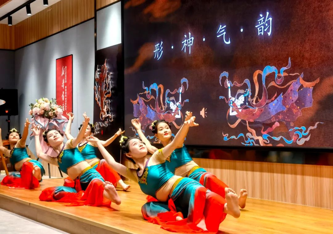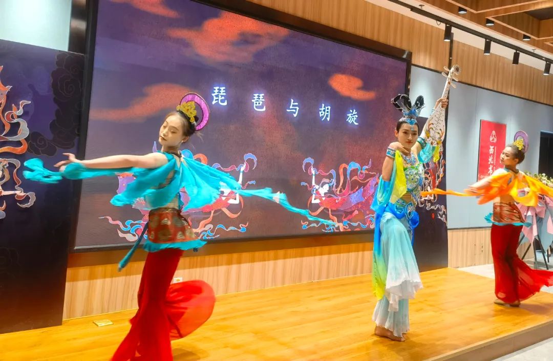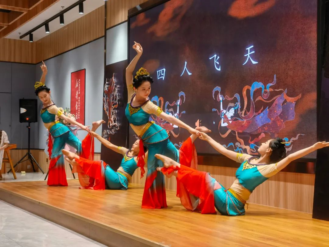 見(jiàn)面會(huì)現(xiàn)場(chǎng),作者介紹了本書創(chuàng)作歷程,并通過(guò)“形、神、氣、韻”“抻、曲”“舞姿控制”“四臂觀音”“四人飛天”“胡旋與琵琶”等組合精彩紛呈的表演,使讀者更加直觀地了解本書的主要內(nèi)容和敦煌舞蹈的文化內(nèi)涵,感受敦煌舞蹈?jìng)鬟f出的藝術(shù)價(jià)值、文化素養(yǎng)和無(wú)窮的魅力。