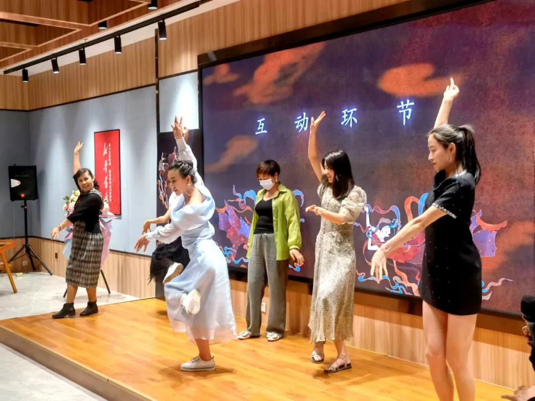 見(jiàn)面會(huì)還設(shè)計(jì)了互動(dòng)環(huán)節(jié),主編李莉現(xiàn)場(chǎng)教學(xué),五位敦煌舞愛(ài)好者認(rèn)真模仿,作者還向參與互動(dòng)的讀者贈(zèng)送了本書。在簽售環(huán)節(jié)后,作者及參演人員和讀者合影留念。