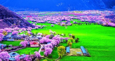 波密桃花谷桃花盛開(kāi) 西藏林芝市波密桃花谷,面積約為155.04平方千米,平均海拔2740米。每年3月到4月中旬,這里的桃花陸續(xù)開(kāi)放,人文景觀豐富的雪山下、村落間隨處都是桃花的蹤跡。作家江子在散文《去林芝看桃花》中寫(xiě)道:“我看到一路上它大片大片地盛開(kāi)。它向著我奔跑。好像是它終于認(rèn)出我來(lái),然后相邀更多的桃花來(lái)與我相認(rèn)……”央青占堆(藏族)攝/光明圖片