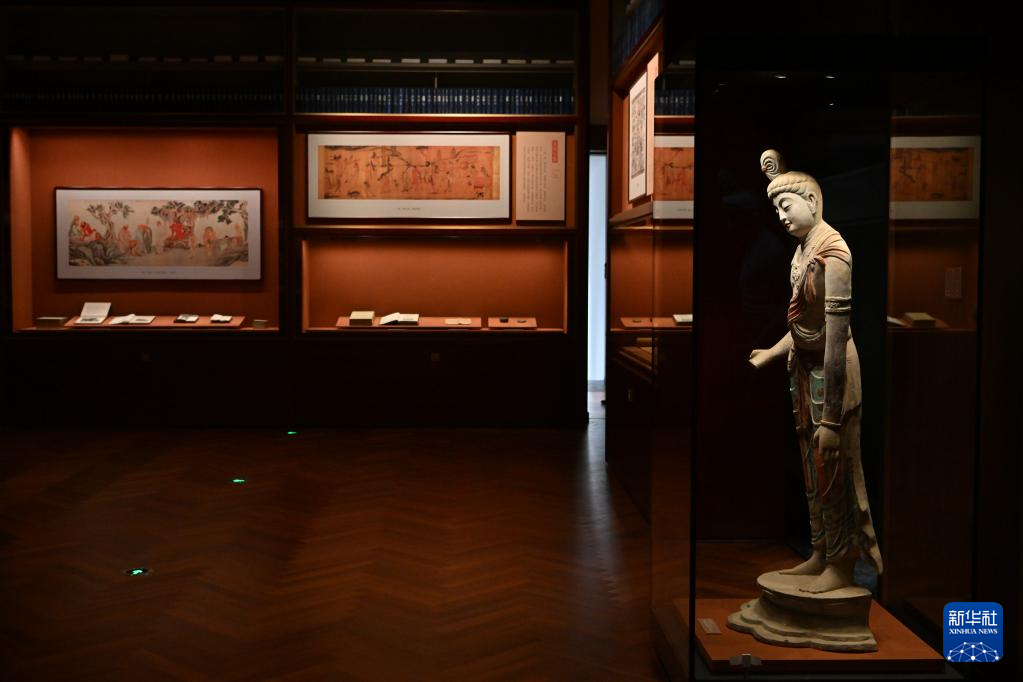 這是在北京拍攝的中國國家版本館中央總館內(nèi)的展覽陳設(shè)(7月23日攝)。