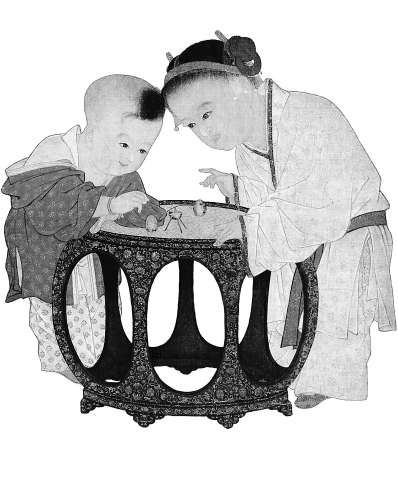 秉燭夜游是大人的游戲,那么古代的孩子玩什么呢?《陪孩子看中國(guó)畫(huà)》專門介紹了以兒童游戲?yàn)橹黝}的圖畫(huà),其中《秋庭戲嬰圖》是宋代描寫(xiě)童心的經(jīng)典畫(huà)作,刻畫(huà)了姐弟倆玩推棗磨的游戲。棗磨的制作原料非常簡(jiǎn)單,由三顆鮮棗、三根短棍和一根長(zhǎng)棍組成。這是古代北方秋天棗子成熟之后,孩子們經(jīng)常玩的一種自制玩具。孩子身后還有很多其他商業(yè)制作的玩具,但姐弟倆卻專注玩著自制的玩具。田玉彬感慨:“姐弟倆專注欣悅地玩推棗磨,而把一堆商品玩具丟在身后,這看似無(wú)意的對(duì)比想來(lái)是出于畫(huà)家的精心安排,他或許是想說(shuō)童心并不在乎精巧華貴,而在乎清新純潔。”