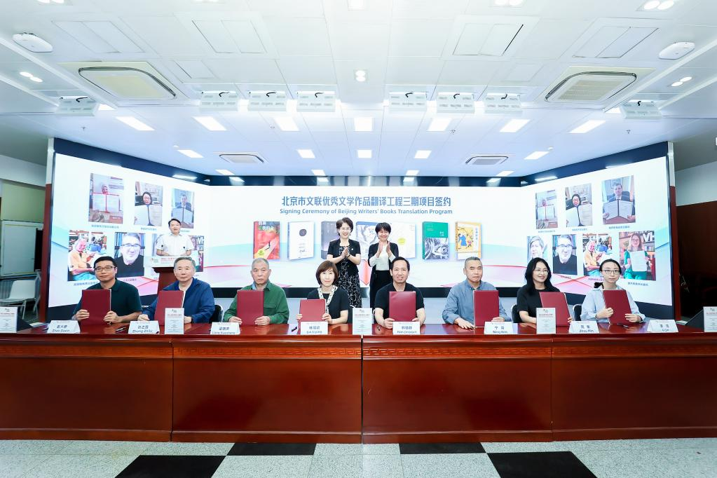 開(kāi)幕式上,發(fā)布了北京市文聯(lián)優(yōu)秀文學(xué)作品翻譯工程圖書(shū)成果,周曉楓《星魚(yú)》意大利文版和英文版、葉廣芩《花貓三丫上房了》法文版、星河《北京小子》阿文版集中亮相。梁曉聲《我和我的命》、張之路《吉祥時(shí)光》、格非《月落荒寺》、畢淑敏《預(yù)約死亡》、肖復(fù)興《我們的老院》、張悅?cè)弧段已鸸舛鴣?lái)》、寧肯《蒙面之城》7部作品簽署版權(quán)輸出協(xié)議,這些優(yōu)秀文學(xué)作品即將“走出去”與海外讀者見(jiàn)面。