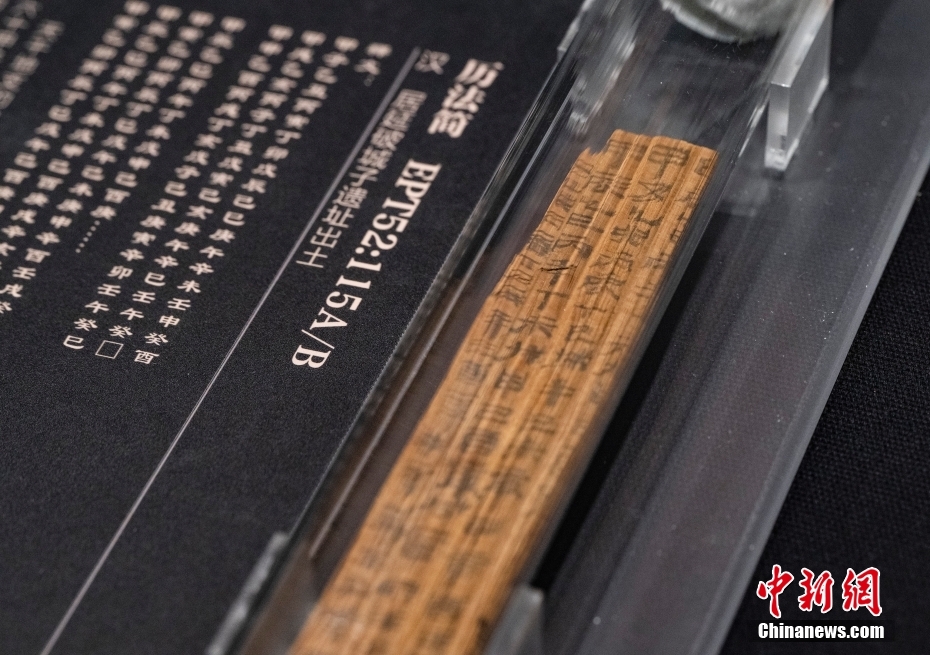 1月17日,“二十世紀(jì)初中國(guó)古文獻(xiàn)四大發(fā)現(xiàn)展”正在位于北京的國(guó)家典籍博物館內(nèi)展出。本次展覽分為“殷墟甲骨”“居延漢簡(jiǎn)”“敦煌遺書(shū)”“明清檔案”四個(gè)專(zhuān)題,首次將分藏于各處的四大文獻(xiàn)薈萃一堂,集中多種類(lèi)型的珍貴文物文獻(xiàn)共249種,382件,是目前為止“四大發(fā)現(xiàn)”文物最大規(guī)模的展覽。圖為“居延漢簡(jiǎn)”展區(qū)中展示的一條“歷法簡(jiǎn)”的真跡實(shí)物展品。 中新社記者 侯宇 攝