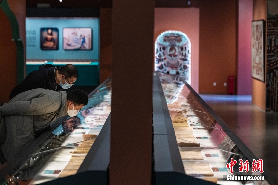 圖為觀眾在“敦煌遺書(shū)”展區(qū)內(nèi)參觀。 中新社記者 侯宇 攝