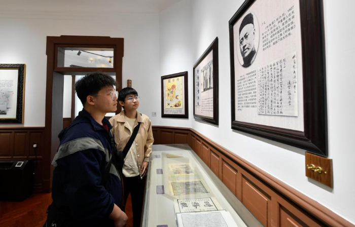 4月30日,游客在梁啟超紀(jì)念館內(nèi)參觀。新華社記者孫凡越攝