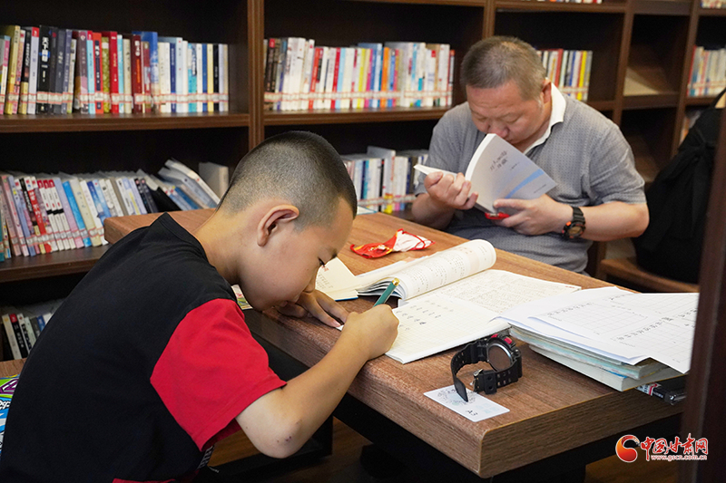 我們到達(dá)書屋時(shí)正是中午,盡管外面是灼灼烈日,里面卻清涼而寧靜。書屋里坐滿了人,有頭發(fā)花白的老先生,也有七八歲的稚童,四處都彌漫著書香和濃厚的讀書氛圍。