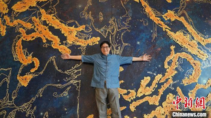 中國工藝美術大師朱炳仁“打卡”《仰望星空》。  陳蕾 供圖