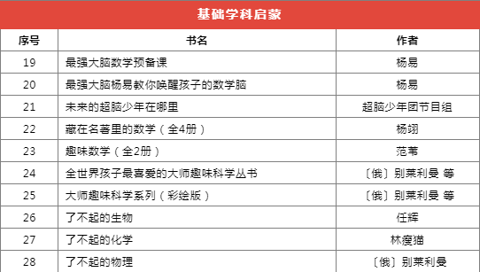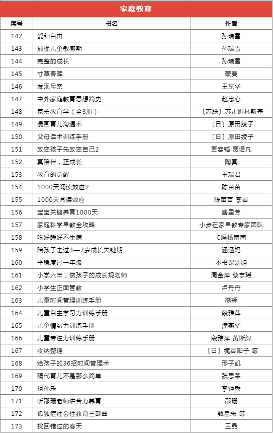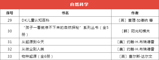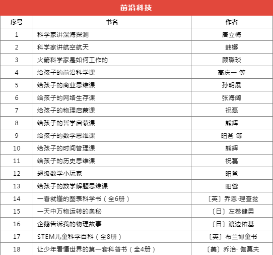 推薦書目種類繁多,分為前沿科技、基礎學科啟蒙、自然科學、家庭教育等十個類別,共計173本(套)。