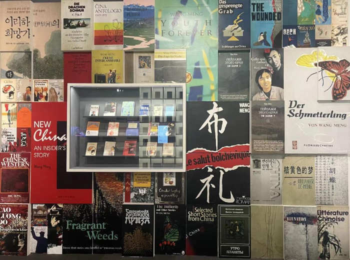 展廳內(nèi)的多語(yǔ)言版本著作墻。(中國(guó)國(guó)家博物館供圖)