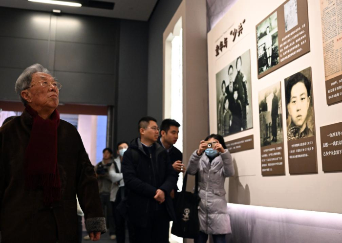 2023年12月21日,作家王蒙(左一)參觀展覽。新華社記者 金良快 攝