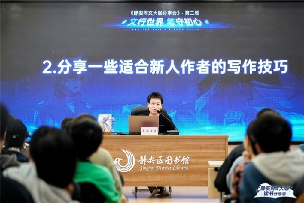 本次分享會再次邀請知名網絡文學作家天蠶土豆作為主講嘉賓,與讀者們面對面交流,分享他的寫作技巧和創(chuàng)作趣事,在互動環(huán)節(jié)解答讀者對網絡文學作品的好奇。活動現(xiàn)場熱情積極,在靜安區(qū)圖書館充滿書卷氣的環(huán)境里展現(xiàn)著獨特魅力。