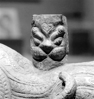 不僅造型夸張,在雕塑的外形紋飾上也用各種線圈、各種線條,突出表現(xiàn)了猛獸的兇猛強(qiáng)悍,給人一種望而生畏的感覺(jué)。